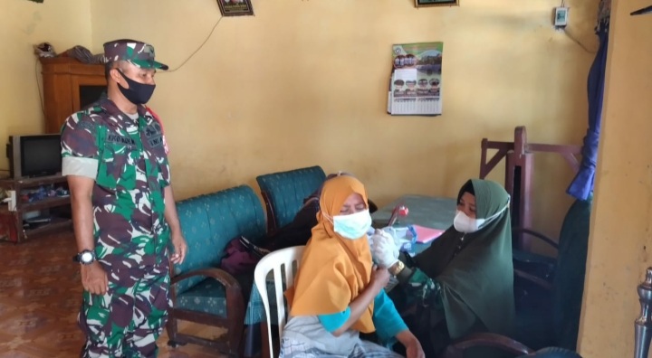 Aksesnusantara.id – Lamongan, Dalam rangka mendukung kegiatan Vaksinasi dan memutus mata rantai penularan Covid-19, Babinsa Koramil 0812/07 Bluluk Serda Didik melaksanakan pendampingan vaksinasi Covid-19 dosis pertama dan kedua secara door to door kepada warga binaanya di Desa Bluluk, Kecamatan Bluluk, Kabupaten Lamongan, Minggu (27/03/2022).