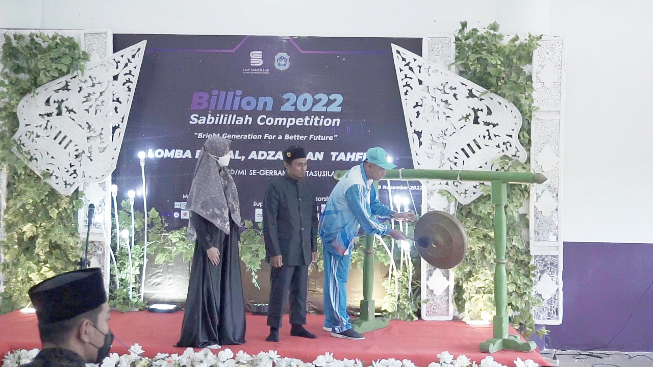Penuh rasa semangat dan bangga serta di dampingi kepala sekolah juga perwakilan yayasan kepala dinas pemuda dan olahraga memukul gong 3x menandakan telah dibukanya rangkainya multi event billion sabilillah competition 2022.