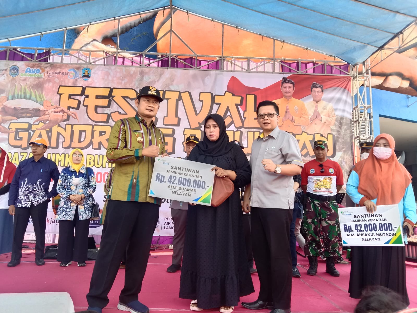 Pada kegiatan Festival Gandrung Rajungan itu BPJS Ketenagakerjaan Cabang Lamongan berkesempatan memberikan Santunan Jaminan Kematian secara simbolis oleh Bupati Lamongan kepada 3 orang Ahli Waris Nelayan yang meninggal Dunia, masing-masing mendapat sebesar Rp. 42 jt.