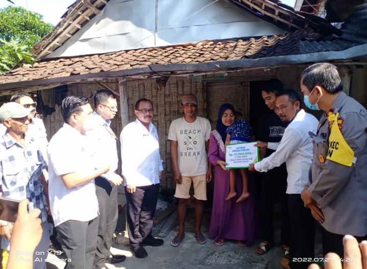 Penyerahan santunan diserahkan secara oleh Camat Laren, Syam Teguh Wahono didampingi oleh Kepala Kantor Cabang BPJAMSOSTEK Lamongan, Dadang Setiawan di rumah duka, Dusun Rengin, Desa Tejoasri, Kecamatan Laren, Kabupaten Lamongan, Rabu (27/7/2022).