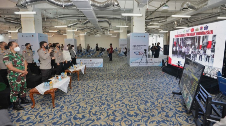 Selain mengecek pelaksanaan vaksinasi, Kapolda jatim juga mengikuti zoom meeting dan berdialog interaktif secara virtual dengan Kapolri Jendral Polisi Listyo Sigit Prabowo. Dalam rangka Vaksinasi Covid-19 Serentak di Indonesia.