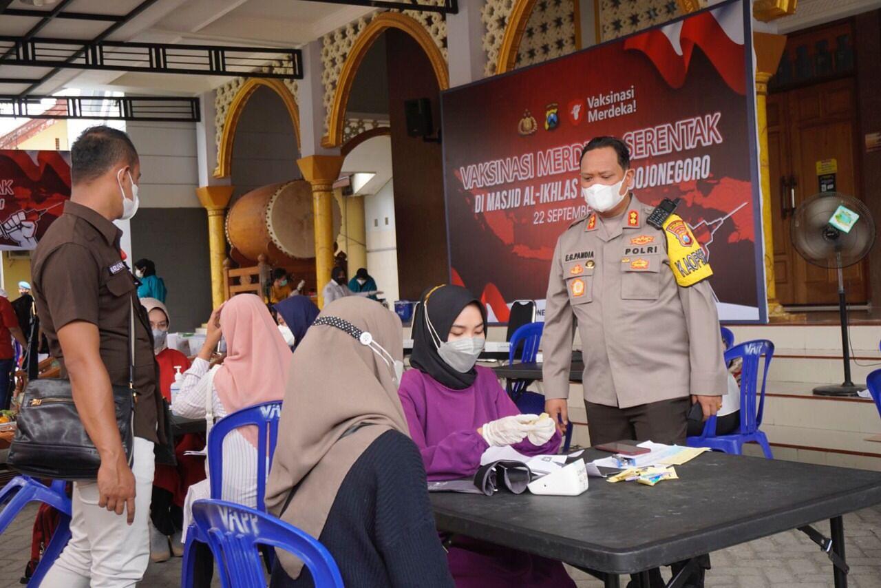 Serbuan vaksinasi besar-besaran di Mapolres Bojonegoro, dikawal langsung oleh Kapolres AKBP E.G Pandia sejak awal sampai akhir.