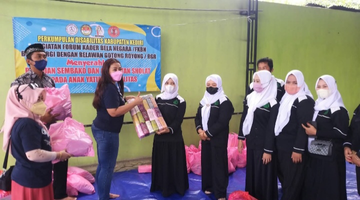 Aksesnusantara.id – Forum Kader Bela Negara ( FKBN) Kediri Raya bersinergi Relawan Gotong Royong (RGR) berbagi bansos Sembako dan seperangkat alat sholat Ke anak Yatim dan Dhuafa disabilitas pada Jumat pagi 25 Februari 2022 di Perkumpulan Disabilitas Kabupaten Kediri (PDKK ) di Ngadiluwih Kabupaten Kediri .