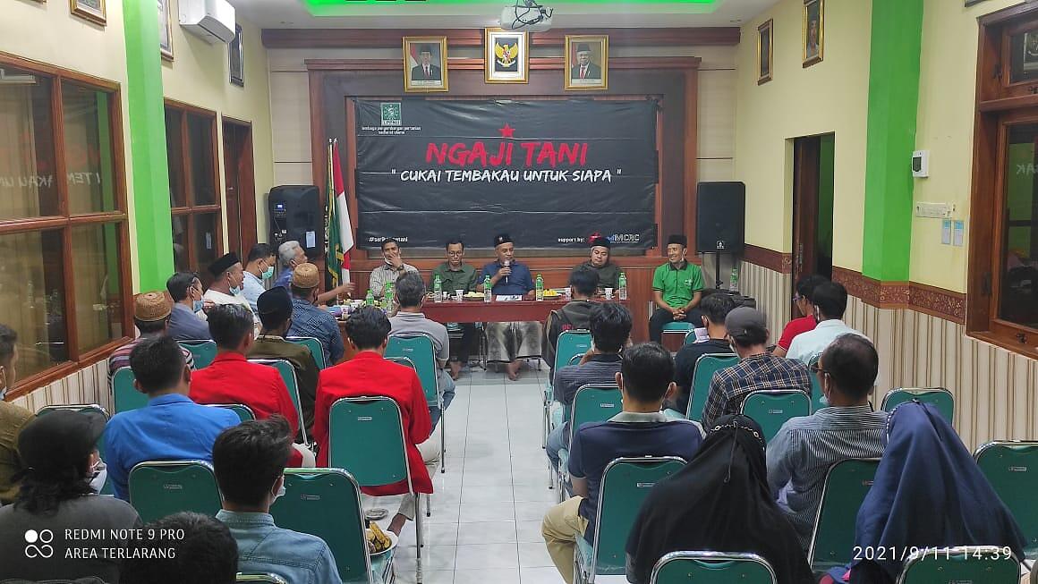 Diskusi yang dibungkus dengan judul ngaji tani bertema “Cukai Tembakau Untuk Siapa?” yang diselenggarakan Sabtu (11/9/2021) bertempat di aula PC NU Lamongan menghadirkan beberapa pakar. masing masing narasumber menyampaikan gagasanya seperti komisi B DPRD Lamongan, Dinas Tanaman Pangan dan Holtikultura, Bapeda, perwakilan petani tembakau, Asosisasi petani tembakau Indonesia,praktisi akademisi serta petani tembakau wilayah selatan.