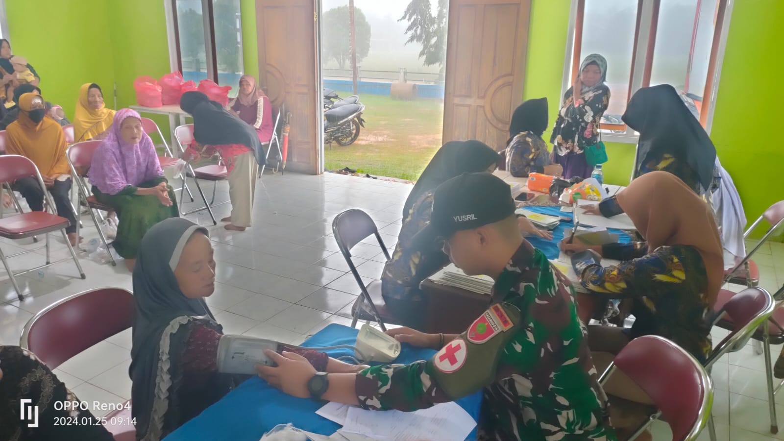 Merauke – Dalam rangka memastikan kondisi kesehatan masyarakat dapat terpenuhi dengan baik, personel kesehatan Satgas Yonif 726/Tml membantu pelaksanaan Posyandu Lansia di Balai Kampung Sipias, Kamis (1/02/2024).