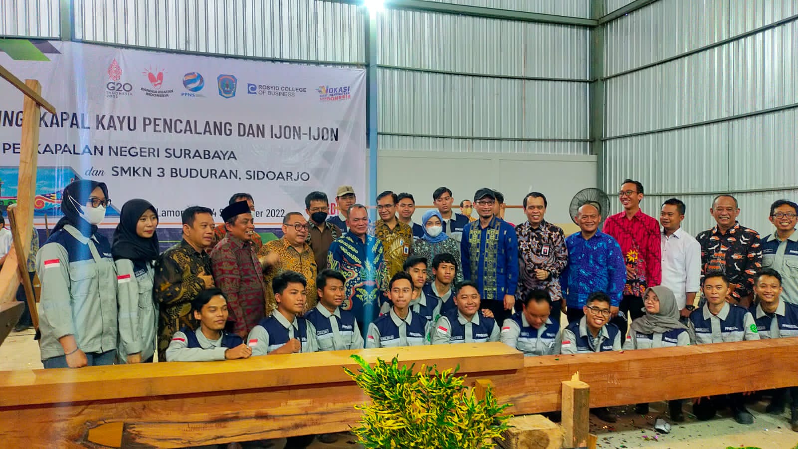 Lalu Kepala SMK N 3 Buduran, Pengasuh Pondok Pesantren Sunan Drajat Paciran Lamongan, Kepala Dinas Pendidikan Provinsi Jawa Timur, Prof. Daniel M. Rosyid dari Rosyid College, Kadisdik Lamongan, Tim Revitalisasi Perkapalan Tradisional — PPNS, Tim Revitalisasi Perkapalan Tradisional – SMKN 3 Buduran.(At)