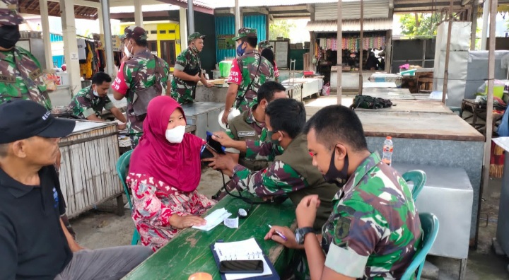 Dalam kegiatannya slaber tim mobile Vaksinator yang pelaksanaanya di Dampingi PJ Danramil 0812/26 Pucuk Letda Inf Sugeng menerapkan door to door system. Artinya, tim mobile Vaksinator yang didampinginya melakukan pengawasan penerapan prokes dari sudut lapak jualan yang satu ke lapak jualan yang lain bergerilya mencari orang – orang yang Belum vaksin