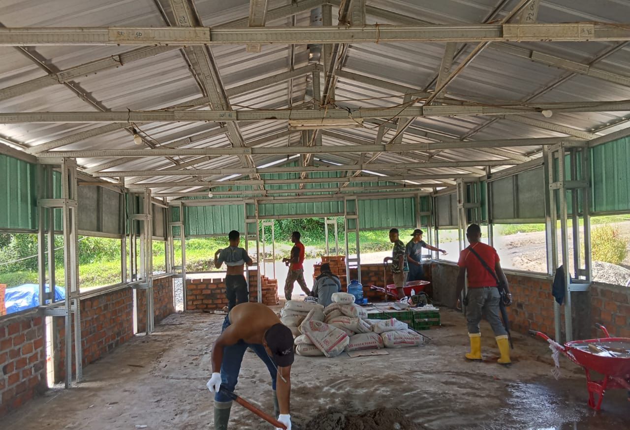 Tambrauw – Pembangunan Gereja Advent di Kampung Babak, Distrik Fef, Kabupaten Tambrauw terus menunjukkan kemajuan signifikan. Pada hari ini, Selasa (15/10/2025), Satgas TMMD ke-126 Kodim 1810/Tambrauw bersama masyarakat setempat kembali melanjutkan tahap pemasangan batu bata dengan penuh semangat dan kebersamaan. Kegiatan ini menjadi wujud nyata sinergi antara TNI dan warga dalam mempercepat pembangunan sarana ibadah yang sangat dinantikan masyarakat.