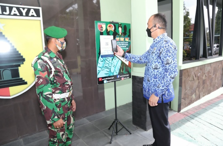 Tak hanya aplikasi Peduli Lindungi saja akan tetapi juga harus mentaati Protokol kesehatan secara ketat apabila memasuki Makodim 0812 Lamongan.