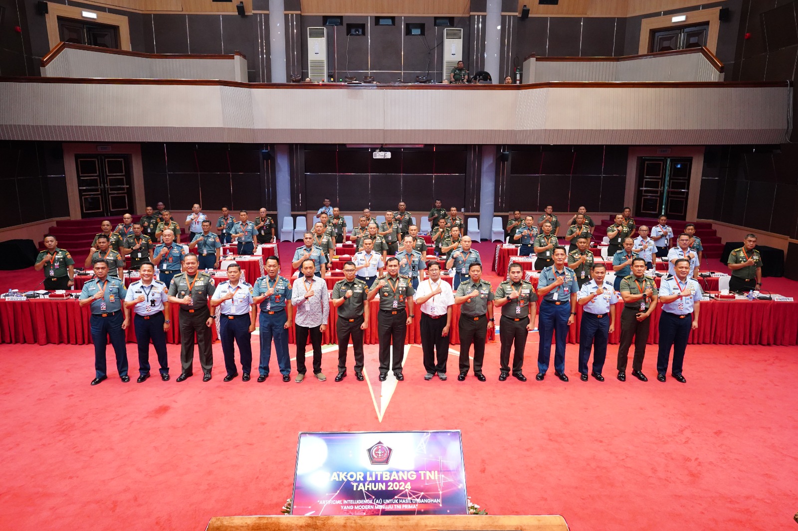 Jakarta – Waasrenum Panglima TNI Brigjen TNI Harvin Kidingallo, S.H., S.T., M.Han., mewakili Asrenum Panglima TNI Laksda TNI Edwin, S.H., M.Han., M.H., membuka secara resmi Rapat Koordinasi Penelitian dan Pengembangan (Rakor Litbang) TNI tahun 2024, bertempat di Aula Gatot Subroto Mabes TNI, Cilangkap, Jakarta Timur, Rabu (29/5/2024).